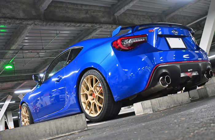 念願のBBSホイールを装着出来ました! 86/BRZだと「RI-A」が鉄板?ですが、私は中々86/BRZで装着していない『RE-V7』のデザインに惹かれて、購入に至りました! W2Rブルーとゴールドホイールの組み合わせはやはり最高&最強です!! これからずっと愛用していきます!! ありがとうございました!
