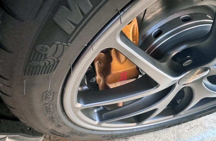 純正ホイールからの交換です。こちらの車両MTですが明らかに発進が軽やかになりました。7.5J+44で純正ブレンボかわしてくれました。